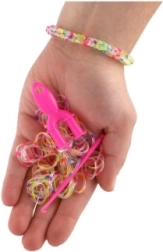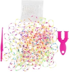 Obsahuje všetko potrebné na výrobu náramkov - 200 dúhových gumičiek, háčik a uzávery.