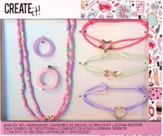 Táto kreatívna sada šperkov CREATE IT! prináša zábavu a štýl do každého dňa. Pastelové koráliky, roztomilé prívesky a jemné farby ladia s oblečením na oslavy aj bežné nosenie. Deti si ľahko doladia outfit a precvičia vlastný vkus i fantáziu.
