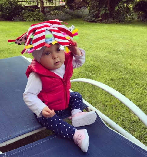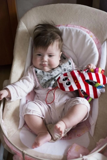 Výrazné červeno-biele prúžky a čierne bodky podporujú zrakovú stimuláciu novorodencov a dojčiat.