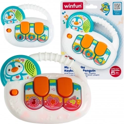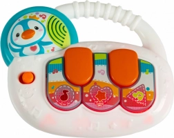 Pianinko tučniak ponúka skvelú zábavu pre malých hudobníkov. Je vybavené tromi veľkými oranžovými tlačidlami, ktoré po stlačení vydávajú veselé melódie a svetelné efekty. Vďaka praktickej rukoväti sa ľahko prenáša, čo z neho robí ideálnu hračku na cesty.