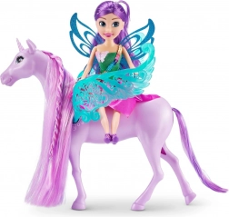 Objavte očarujúce duo víly a jej jednorožca, ideálne pre kreatívne príbehy o mágii a dobrodružstvách. Bábika má dlhé fialové vlasy, ktoré možno česať a upravovať, trblietavý outfit a pohyblivé končatiny na pózovanie. Jednorožec s nastaviteľnými krídlami a vrkočovou hrivou pozýva na fantastické vychádzky.