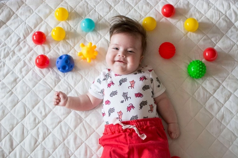 Využite ich na voľné skúmanie, prvé pokusy o prechytávanie z ruky do ruky, nácvik kotúľania a hádzania aj jemnú relaxačnú masáž bruška, chrbta či chodidiel. Rôznorodé textúry pomáhajú mozgu správne spracovávať dotykové podnety a prinášajú deťom upokojenie pri hre aj pred zaspávaním.