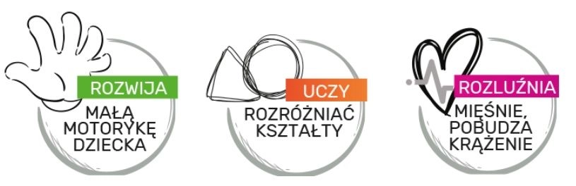 - Hra, rozvoj jemnej motoriky, koordinácia oko–ruka, relaxačná masáž