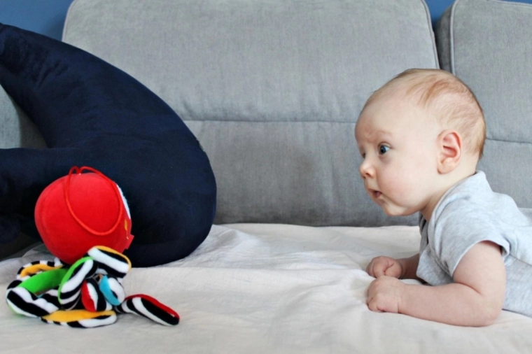 - Senzorická stimulácia: kontrastné farby, textúry a jemný zvuk rozvíjajú zrak, sluch a hmat.