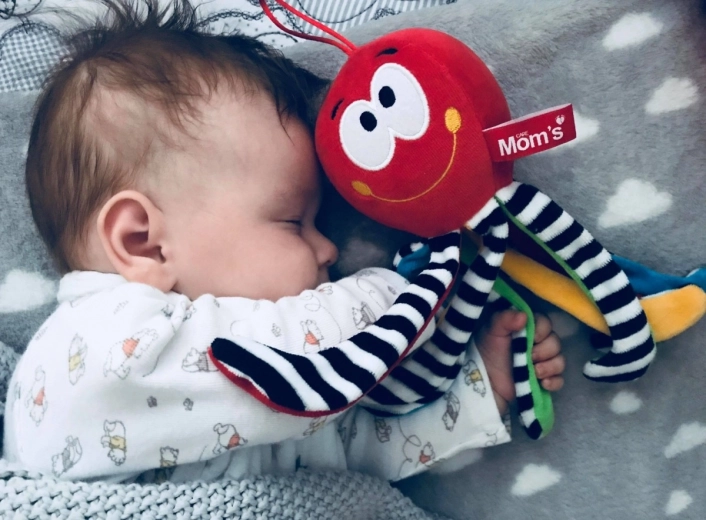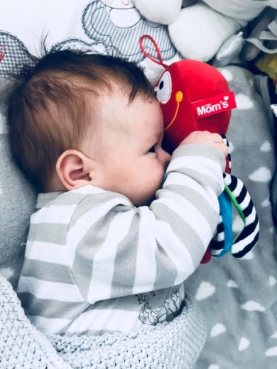 Roztomilá červená mini chobotnička od Mom's Care poteší bábätká od narodenia. Ponúka mäkké materiály, kontrastné farby a rôzne textúry na zmyslové objavovanie. Praktický záves umožní pripevnenie na kočík, autosedačku či postieľku a jemný zvuk rolničky bábätko upokojí a zaujme. Certifikované materiály sú bezpečné pre citlivú detskú pokožku.