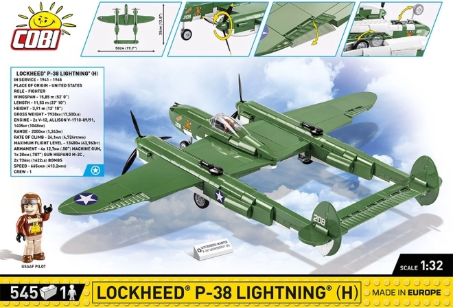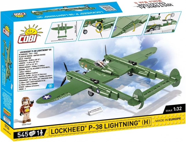Postavte si legendárny americký stíhací lietadlový stroj z druhej svetovej vojny – LOCKHEED P‑38 LIGHTNING v mierke 1:32 od COBI. Sada obsahuje 545 dielikov, detailné potlače bez nálepiek, pohyblivé prvky (vrtule, klapky, podvozok) a otváraciu kabínu s figúrkou pilota. Oficiálna licencia LOCKHEED MARTIN zaručuje verné spracovanie ikonického „Lietajúceho rámu“.