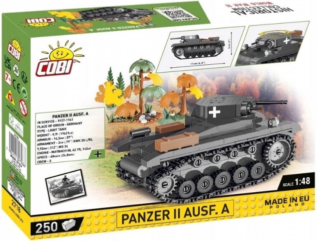Ponorte sa do modelárskeho zážitku s touto stavebnicou tanku Panzerkampfwagen II, ktorý bol kľúčovým strojom nemeckej armády na začiatku druhej svetovej vojny. Vďaka novej mierke 1:48 je model ideálny pre začiatočníkov aj fanúšikov stavebníc COBI. Súčasťou balenia sú doplnky z kockového prostredia, ktoré prinášajú nový rozmer zábavy. Výnimočne presná konštrukcia a vysoká kvalita potlačí zaisťujú, že model zostane bezchybný aj po hodinách hry.