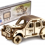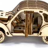 Tento model rally vozidla ponúka chytľavú kombináciu kreatívnej zábavy a elegantnej dekorácie do interiéru. Diely z prvotriednej brezovej preglejky do seba presne zapadajú – bez lepidla a skrutiek – a výsledkom je pôsobivé retro auto s množstvom drobných detailov.