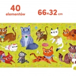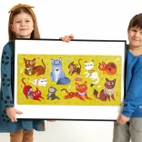 Rozkošné puzzle CzuCzu s motívom mačiek poteší malých milovníkov zvieratiek od 3 rokov. Sada obsahuje 40 pevných dielikov, z ktorých vytvoríte obrázok s rozmerom 66 × 32 cm. Pri skladaní si deti prirodzene rozvíjajú jemnú motoriku, koncentráciu a postreh, a zároveň spoznávajú farby a tvary.