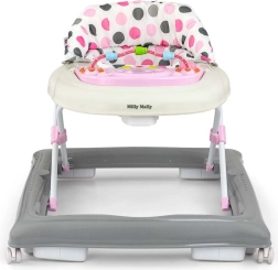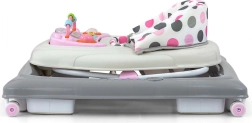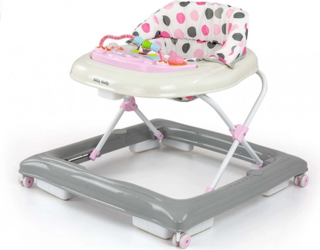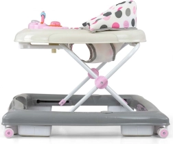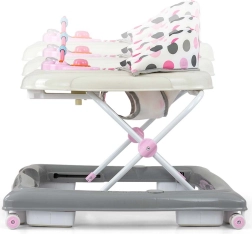 Štyri kvalitné otočné kolieska, ktoré nepoškriabu povrch, po ktorom sa pohybujú, zaisťujú voľnosť pohybu a osem gumových zarážok chráni dieťa pred skĺznutím zo schodov alebo iných prekážok.