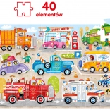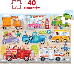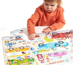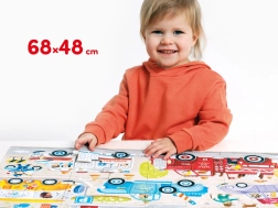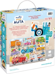 Brum, brum – pripútajte sa, vyrážame! CzuCzu Moto puzzle Autá poteší každého malého fanúšika ciest a strojov. Veľkoformátová 40-dielna skladačka predstavuje rôzne autá, nákladné vozidlá a pracovné stroje v pohybe, takže si deti ľahko nájdu svojho favorita.