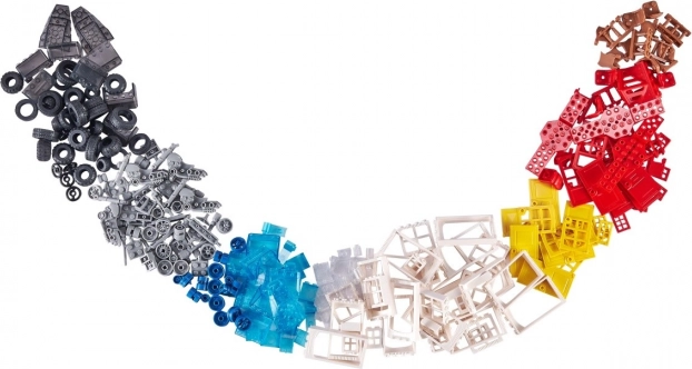 Na rôzne kreatívne stavby sa môžete tešiť s 250 dielikmi, ktoré zahŕňajú kolesá, okná a dvere.