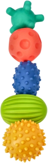 Každá loptička má jedinečný povrch s výstupkami a drážkami. Dieťa tak získava bohaté hmatové podnety a prirodzene rozvíja vnímanie dotyku a jemnú motoriku.