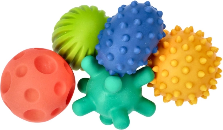 - 5 senzorických loptičiek s rôznymi textúrami a veľkosťami