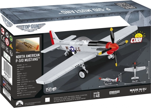 Tento model lietadla P-51D Mustang je zhotovený zo 150 stavebných kociek COBI v merítku 1:48. V sade nájdete iba vysoko kvalitné potlače, ktoré odkazujú na zafarbenie filmového stroja. Tento licencovaný Mustang je nielen skvelým filmovým suvenírom, ale aj modelom, ktorý môže zahájiť nejednu zbierku.