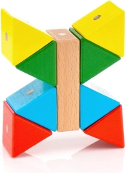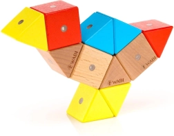 Sada 80 drevených magnetických kociek WABI otvára cestu k veľkolepým stavbám – od jednoduchých tvarov a písmen cez vozidlá až po 3D modely. Vďaka technológii DynamicMagnet sa magnety vo vnútri prvkov otáčajú a vždy sa priťahujú, takže stavanie je plynulé, bez frustrujúceho odpudzovania pólov. Päť sýtych farieb podporuje vnímanie, triedenie aj učenie.