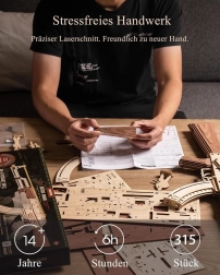 Model je skvelou kombináciou technickej výzvy a kvalitného spracovania z dreva. Vynikne ako štýlová dekorácia do pracovne či izby a zároveň pobaví pri súťažení v presnosti. Produkt je určený pre staviteľov od 14 rokov. Nemierte na ľudí ani zvieratá; obalový materiál nie je hračka.