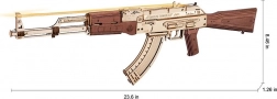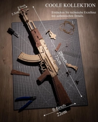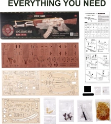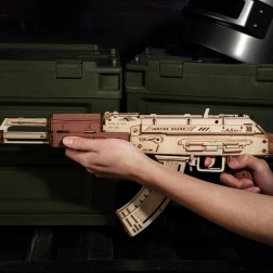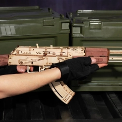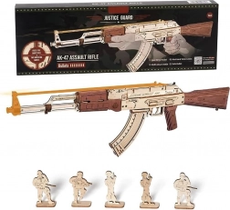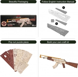 Postavte si prepracovaný drevený model legendárnej pušky AK-47 a vychutnajte si šikovnú zábavu bez lepidla. Sada obsahuje 315 precízne vyrezaných dielov, funkčný mechanizmus na streľbu gumičiek a drevené terče na bezpečný tréning. Ideálne na tvorivý relax, ako dekorácia aj originálny darček pre nadšencov od 14 rokov.