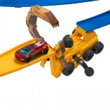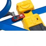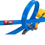 Modré koľajnice a pevné žlté podpery zabezpečujú plynulý prejazd slučkou bez straty rýchlosti – perfektné na súťaže aj tréning rekordov.