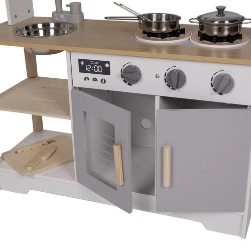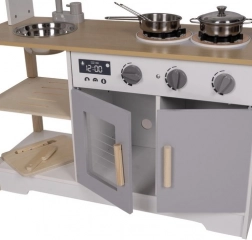 ANALÓGOVÉ HODINY + ZVUKY - analógové hodiny sú umiestnené vo výške očí dieťaťa, ručičky sú pohyblivé, takže sa dieťa môže učiť čas,horáky v kuchynkea mikrovlnnej rúrepri prepínaní ciferníkov cvaknú! Vaše dieťa bude nadšené - kuchynka mu umožní hodiny bezstarostnej hry.