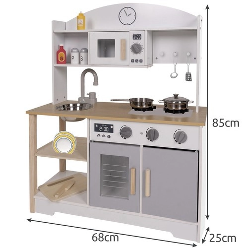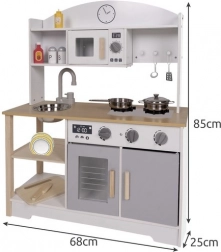 TRVÁCNOSŤ - kuchynka bola vyrobená z kvalitného dreva, čo výrazne ovplyvňuje dĺžku jej používania a bezpečnosť a zdravie tých najmenších. Ide o nadčasový dizajn, ktorý poteší každé dieťa. Vďaka svojmu klasickému vzhľadu bola vždy vysoko cenená. Mimoriadne precízne spracovanie spolu s estetickým prevedením a dôrazom na najmenšie detaily dodáva výrobku pridanú hodnotu a lahodí oku. Kuchynka môže úspešne plniť aj dekoratívnu funkciu a byť ozdobou detskej izby.