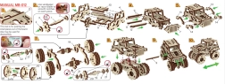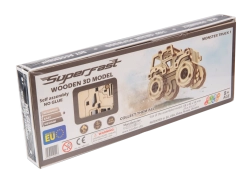 Model je vyrobený z kvalitnej preglejky, skladá sa bez lepidla a náradia a je vhodný aj pre začiatočníkov. Pre plynulý chod mechaniky stačí ľahko premazať ozubené kolesá a osi voskom (napr. zo sviečky), čím znížite trenie a zvýšite životnosť.