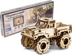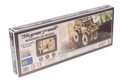 Toto drevené 3D puzzle MONSTER TRUCK 3 ponúka jedinečný zážitok zo stavby – bez lepidla, bez neporiadku, s maximálnou presnosťou výrezov. Model vychádza z prvých povojnových nákladných vozidiel používaných armádou USA a prináša autentický off-road vzhľad s veľkými kolesami a robustnou kabínou.