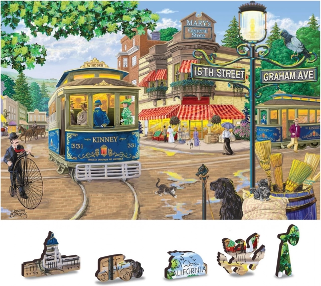 Toto prémiové drevené puzzle prináša živú scénu s retro električkou a uličkou plnou dobových detailov. Vďaka laserom vyrezaným dielikom s hladkými hranami je skladanie radosť aj výzva v jednom. Obojstranné prevedenie umožňuje skladať z lícovej strany podľa motívu alebo z rubu podľa opakujúceho sa vzoru.