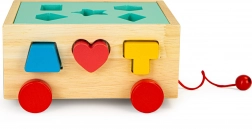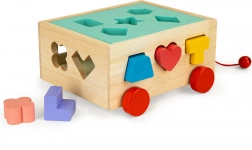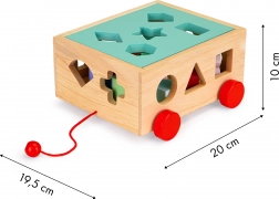 Tento drevený vozík so súpravou pätnástich farebných kociek je dokonalým nástrojom pre rozvoj jemnej motoriky a kognitívnych schopností u detí. S rôznymi otvormi pre vkladanie tvarov deti spoznávajú základné geometrické tvary a farby, čo zvyšuje ich rozpoznávacie schopnosti.