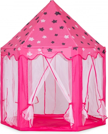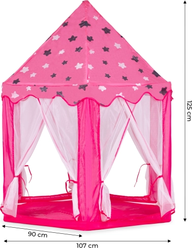 Premeňte detskú izbu na rozprávkové kráľovstvo. Tento stan v podobe princeznovského zámku ponúka útulný kútik na hranie, čítanie aj relax. Vďaka ľahkému skladaciemu rámu a textilnej podložke ho jednoducho postavíte doma aj vonku. Transparentné sieťované panely zabezpečujú prúdenie vzduchu a prehľad o dianí vo vnútri.