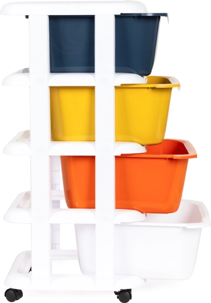 Mobilný organizér ModernHome ponúka praktické a všestranné riešenie pre skladovanie rôznych predmetov. Je ideálny pre uloženie hračiek v detskej izbe alebo kozmetiky v kúpeľni. Je vyrobený z odolného plastu, ktorý zaručuje dlhú životnosť a jeho biely rám dodáva moderný vzhľad.