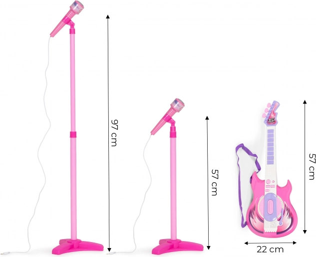 Predstavujeme vám skvelú hudobnú sadu pre deti, ktorá obsahuje elektrickú gitaru a mikrofón so stojanom. S touto sadou sa vaše deti môžu ľahko stať hviezdami koncertu. Hračka nielen podnecuje záujem o hudbu, ale tiež stimuluje kreativitu a zlepšuje koordináciu.