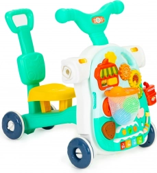 Multifunkčný detský vozítko a stôl 4v1 je ideálny spoločník pre malých objaviteľov. Obsahuje rôzne interaktívne funkcie, ktoré podporujú kognitívny, motorický a zmyslový vývoj detí. S ľahkými, pevnými a protišmykovými kolesami, je konštrukcia stabilná a bezpečná pre deti od 12 mesiacov. Pomáha deťom zvládnuť prvé kroky a rozvíja manuálne zručnosti. Hračka sa jednoducho skladá a demontuje a ponúka rôzne možnosti zábavy.