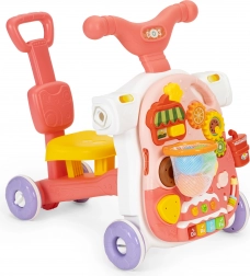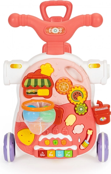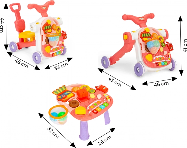 Panel môžete ľahko premeniť na stolík jednoduchým odpojením vzdelávacieho panelu od konštrukcie chodítka a inštaláciou nôh. Tým získava vaše dieťa stolík, ktorý ho bude lákať k hre a tým rozvíjať jeho manuálne zručnosti.