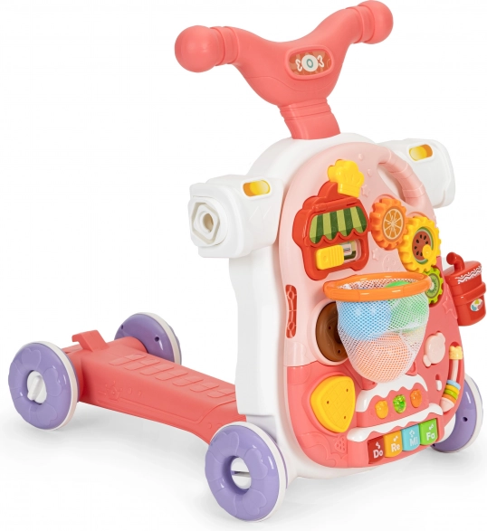 Môže byť použité ako chodítko, ktoré pomáha deťom naučiť sa robiť prvé krôčiky. Vďaka rukoväti (dvojstupňové nastavenie) získa dieťa istú oporu a široko rozostavené kolieska zaistia dostatočnú stabilitu. Ďalšie gumičky na kolieskach chránia podlahu pred poškriabaním a zabraňujú pošmyknutiu, takže sa odrážadlo bude vždy pohybovať požadovaným smerom.