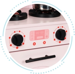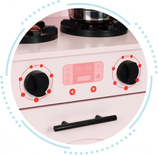 Otočné gombíky na kuchynke umožňujú simuláciu varenia na sporáku a v rúre. Deti tým získavajú bezpečný priestor pre svoje kulinárske experimenty.