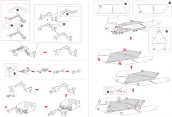 Pre zostavenie modelu použite dieliky z oceľových plátkov (11 x 11 cm) a postupujte podľa priloženého návodu. Diely spájajte pomocou úchytov a otvorov. Odporúčame používať malé tenké kliešte, ktoré však nie sú súčasťou balenia.