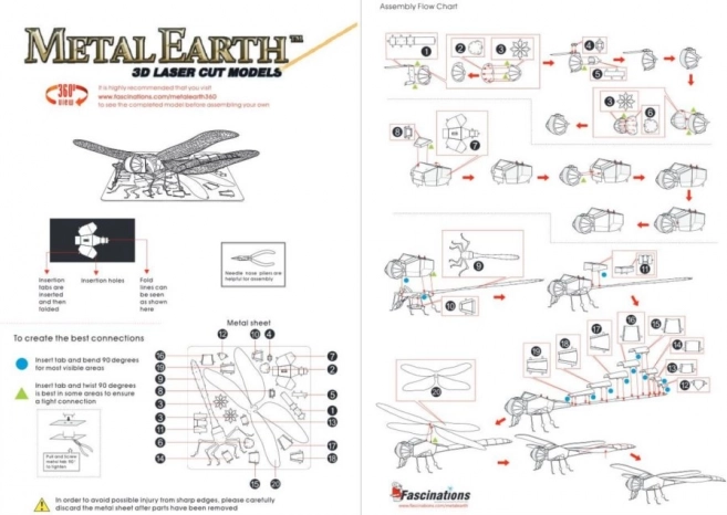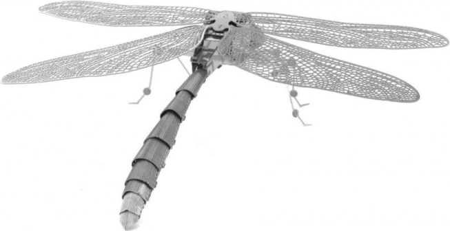3D kovové puzzle METAL EARTH Vážka ponúka skvelý zážitok pre všetky vekové kategórie. Model je tvorený zo štvorcových plátkov ocele (11 x 11 cm) a predstavuje dokonale prepracovaný umelecký kúsok vďaka detailnému laserovému gravírovaniu. Aj keď skladanie vyžaduje určitú zručnosť a trpezlivosť, konečný výsledok sa určite stane pútavou dekoráciou.