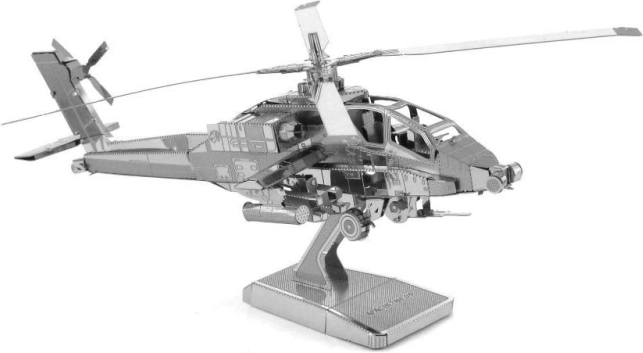 Vytvorte si vlastný 3D model vrtuľníka AH-64 Apache, ktorý sa stane skvelou dekoráciou domova, kancelárie alebo učebne. Metal Earth 3D puzzle je známe svojou presnosťou a detailnosťou vďaka laserovému gravírovaniu. Z oceľových plátkov o rozmeroch 11 x 11 cm zostavíte fascinujúcu miniatúru slávneho amerického bojového vrtuľníka, používaného od konca studenej vojny po súčasnosť.