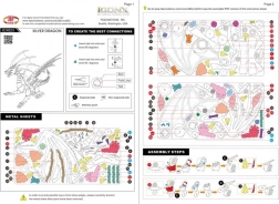 Jednotlivé diely vyberte z kovových plátkov, v prípade potreby použite malé štiepacie nožnice (nie sú súčasťou). Dieliky sa spájajú pomocou zámkov tvorených úchytom (zobáčikom) a otvorom. Zobáčik ohnite pomocou malých tenkých klieští (nie sú súčasťou) a postupne spojte všetky zámky, až vznikne veľmi realistický majstrovský kúsok!