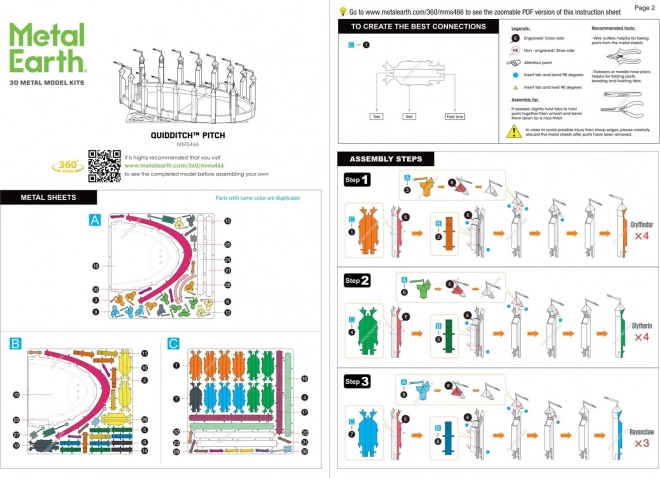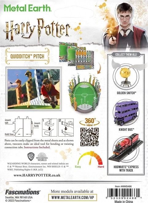 Objavte čaro sveta HARRY POTTER v podobe kovového 3D modelu metlobalového ihriska. Sada METAL EARTH prináša presné výlisky z oceľových plátkov s jemným laserovým gravírovaním, vďaka ktorému vyniknú veže štadióna, bránky aj ihrisko do posledného detailu.