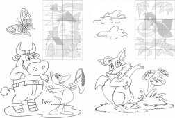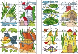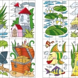 Každá stránka obsahuje veselé 24-dielne puzzle zo samolepiek. Deti hľadajú správne miesta a skladajú celý obrázok – ideálne na tréning sústredenia a koordinácie.