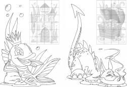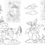 Čiernobiele ilustrácie pozývajú k vyfarbovaniu. Deti si precvičia úchop pastelky a fantáziu, zatiaľ čo vytvárajú vlastné rozprávkové scény.
