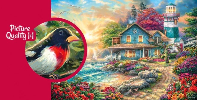 Puzzle Východ slnka pri mori vás prenesie na pokojné morské pobrežie pri východe slnka. Obsahuje 2000 dielikov pre nezabudnuteľný zážitok zo skladania.