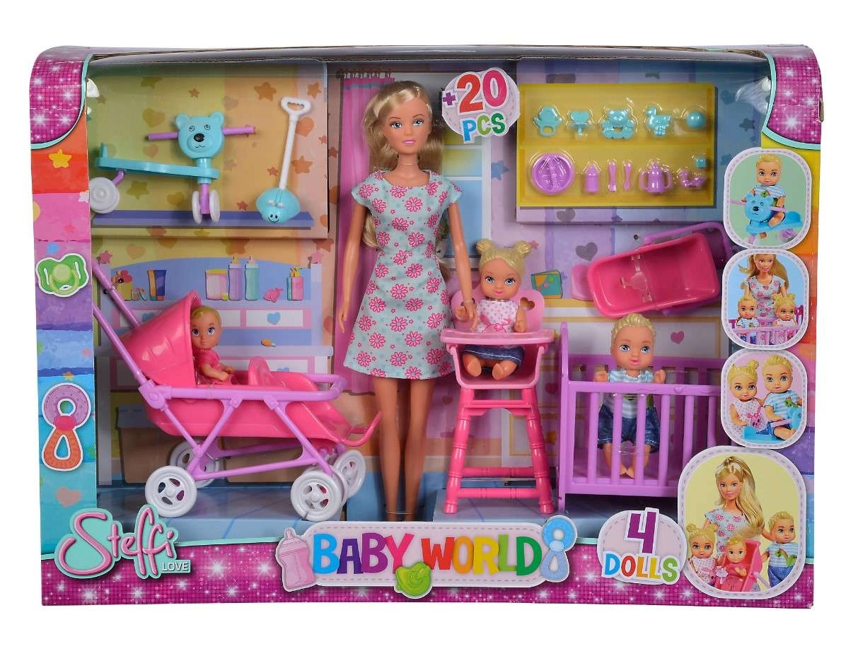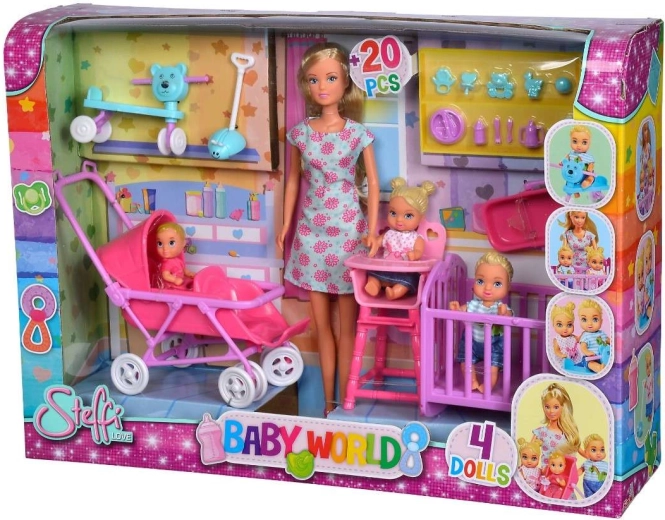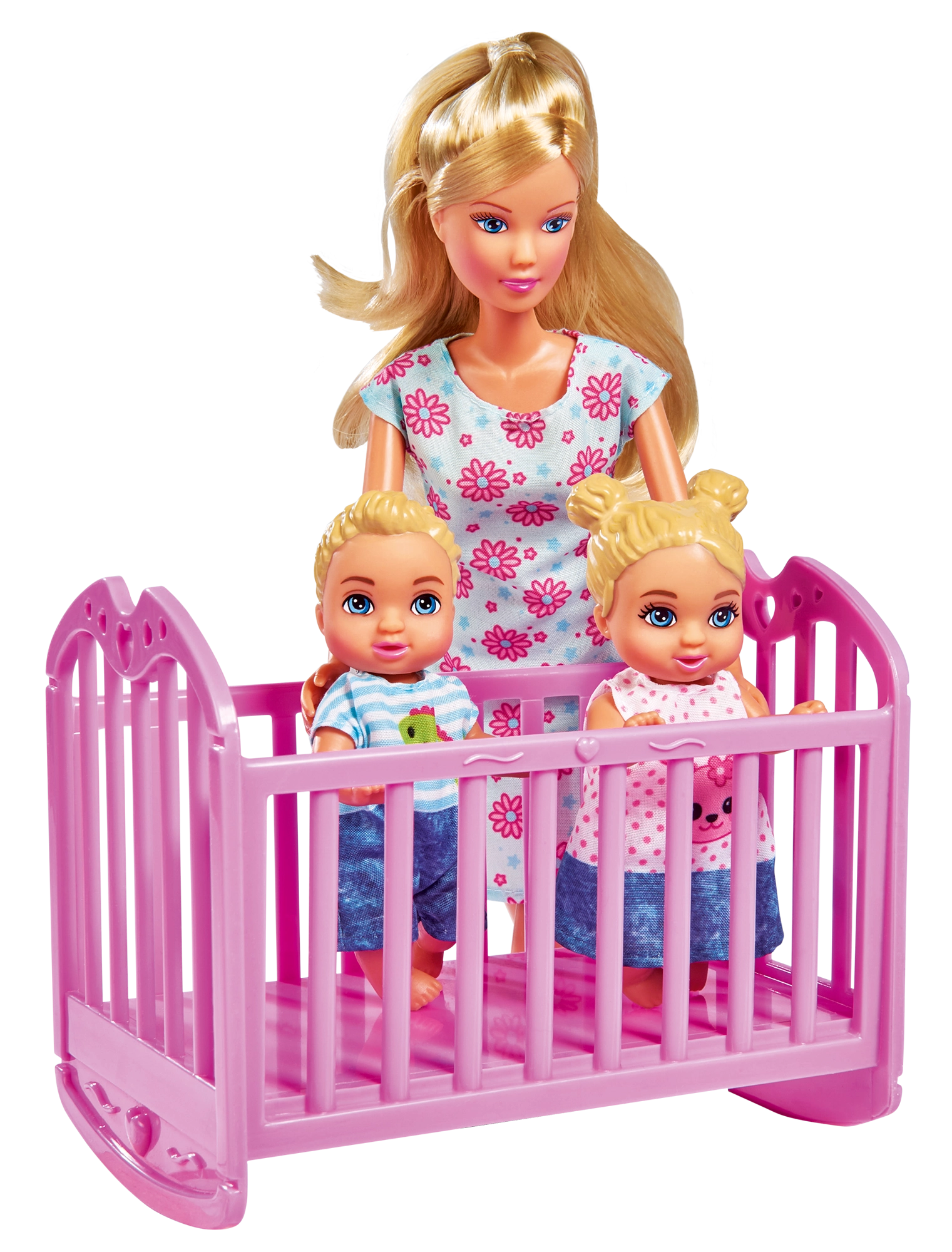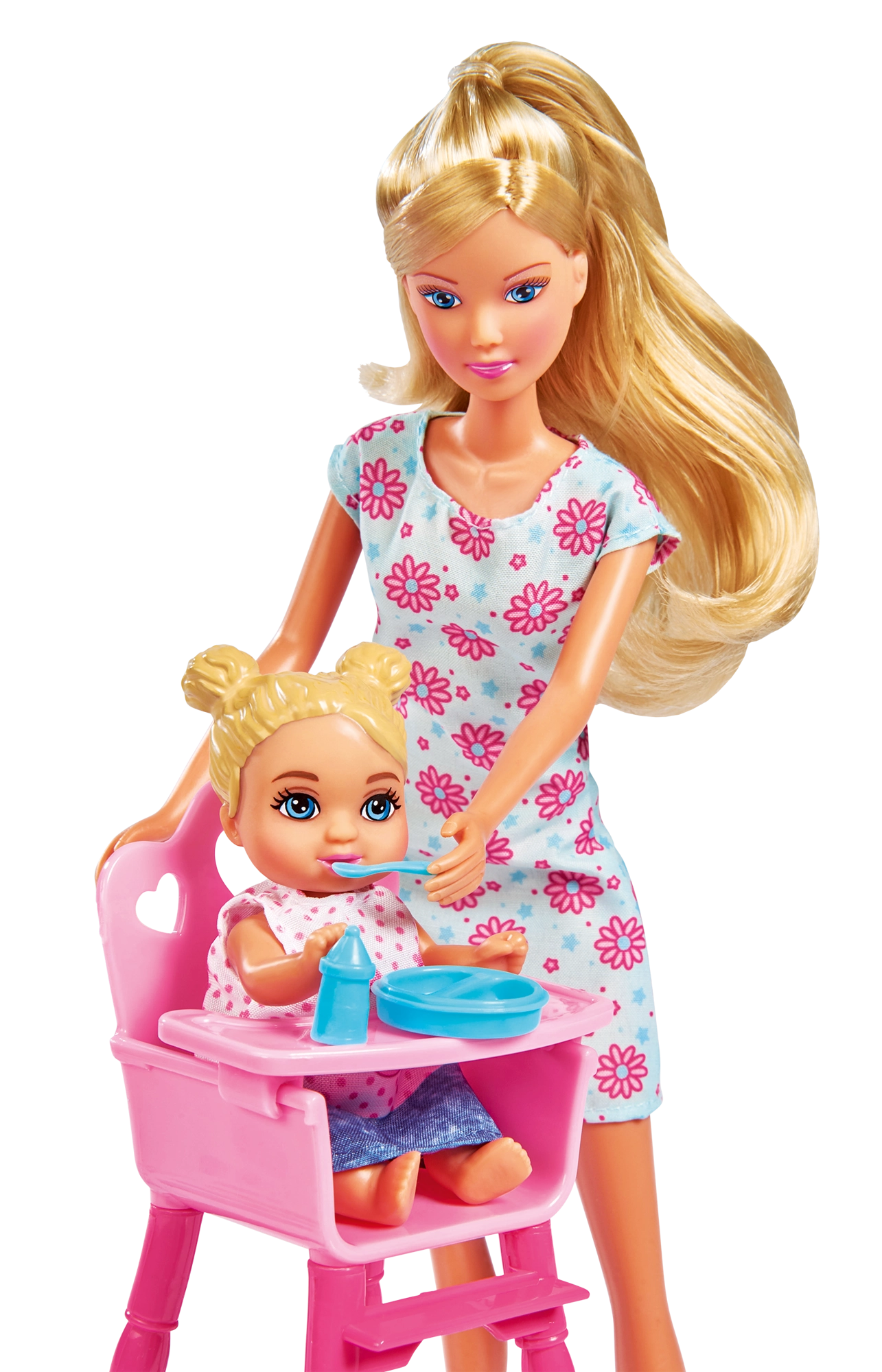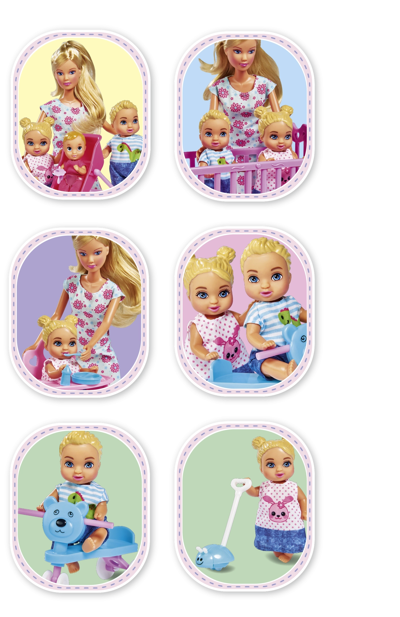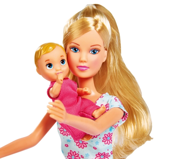 Obľúbená bábika STEFFI sa predstavuje ako starostlivá mamička s tromi bábätkami a bohatou výbavou do izbičky. Vďaka kočíku 2 v 1 (hlboká vanička + športová verzia), postieľke, jedálenskej stoličke a praktickým drobnostiam si deti zahrajú všetky každodenné situácie – od kŕmenia cez uspávanie až po výlety.
