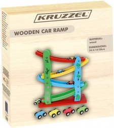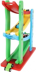 Sada obsahuje drevenú sklzy s 4 rôznofarebnými dráhami a 4 autíčka. Všetko je vyrobené z dreva, čo zaisťuje vysoký štandard bezpečnosti.