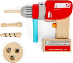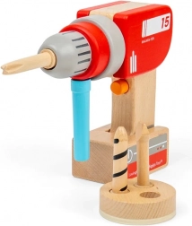 Táto drevená vŕtačka verne napodobňuje skutočné náradie, ale bez elektriny a ostrých častí. Deti môžu ručne otáčať hlavou vŕtačky, prepínať imaginárne režimy pomocou klikacieho tlačidla a jednoducho nasadzovať magnetické vrtáky a skrutky. Ideálna na hry na stavanie poličiek či nábytku a rozvoj praktických zručností.