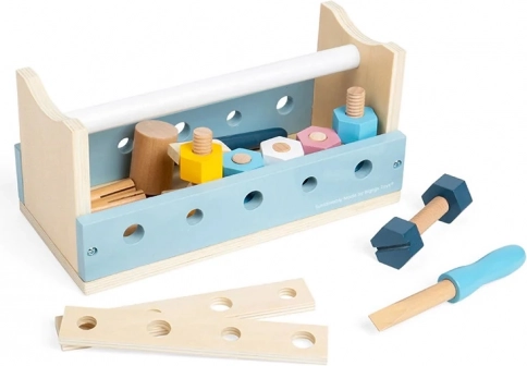 Šikovná a odolná detská sada náradia, ktorá sa jedným otočením mení na pracovný stolík. Obsahuje kladivo, kľúč, skrutkovač, pravítko, skrutky a matice. Vďaka kompaktným rozmerom a vstavanej rukoväti je ideálna na cesty. Vyrobené z FSC® certifikovaného dreva, rozvíja jemnú motoriku, kreativitu a sociálne zručnosti.