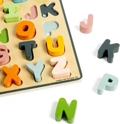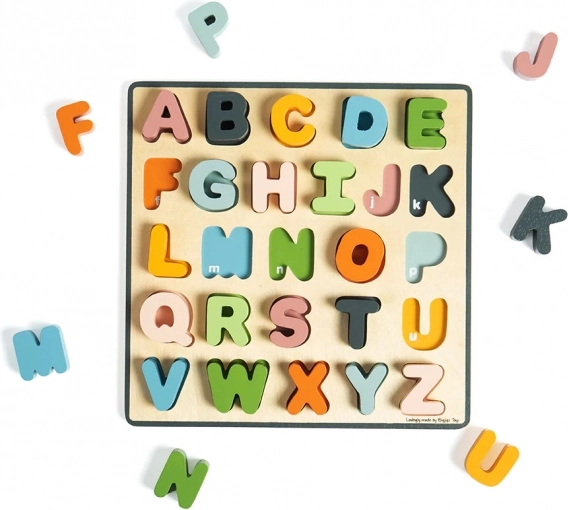 Drevené puzzle s 26 pestrofarebnými písmenami je perfektnou pomôckou na prvé zoznamovanie s abecedou. Každé písmeno má svoj výrez v zodpovedajúcej farbe, čo deťom uľahčuje zapamätanie a správne priraďovanie. Vďaka pevným a ľahko uchopiteľným dielikom si deti precvičia koordináciu oko–ruka a sústredenie.