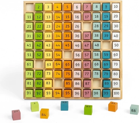 Drevený číselný zásobník 1–100 je ideálna pomôcka na domáce učenie aj do školských tried. Farebne odlíšené kocky pomáhajú deťom vnímať číselné rady, trénovať sčítanie a odčítanie a pritom rozvíjať koncentráciu a logické myslenie.